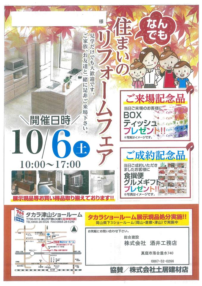 土居建材店さん協賛のもと、タカラスタンダード津山ショールームにて。